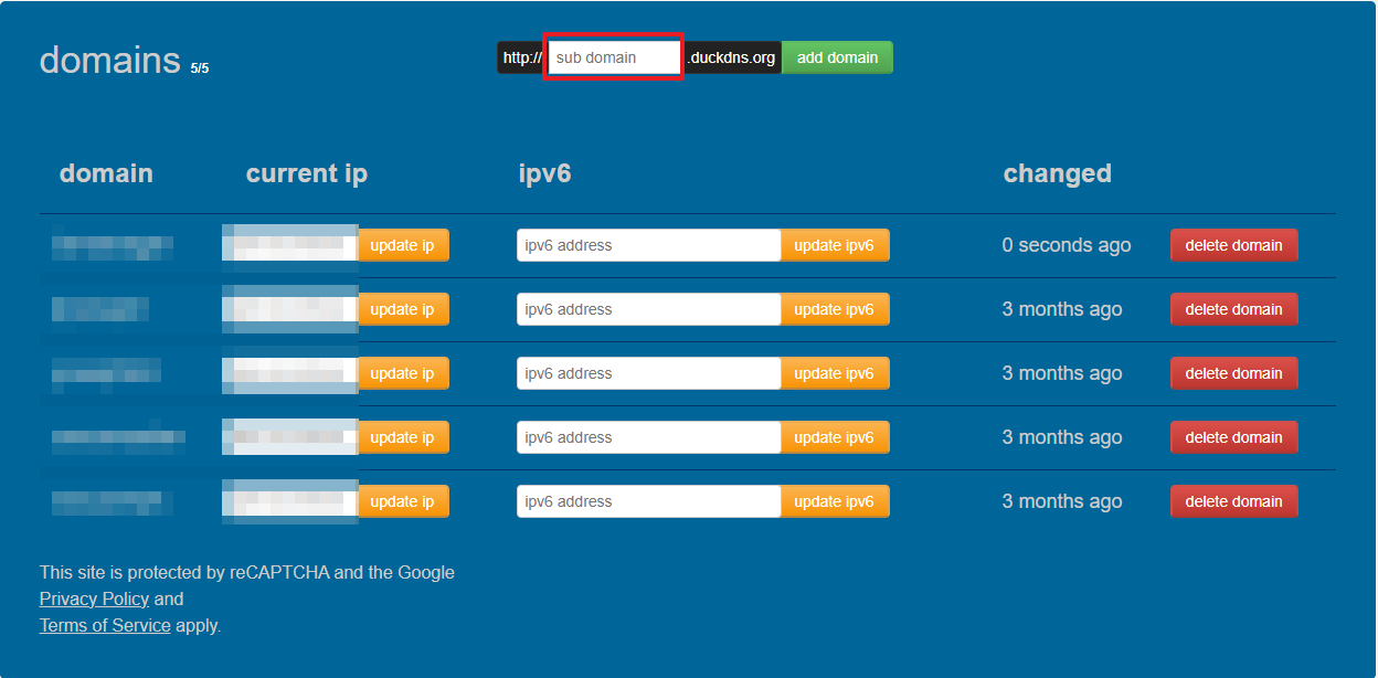 패스워드/키는 duckdns 홈페이지의 가장 첫 화면에 있는 token을 넣어주시면 됩니다.